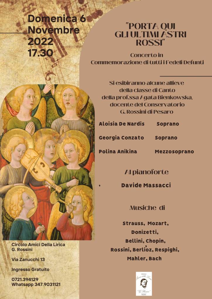 Concerto commemorativo di tutti i fedeli defunti, con la partecipazione di Studenti di Canto della classe professoressa Agata Bienkowska, docente del conservatorio G.Rossini